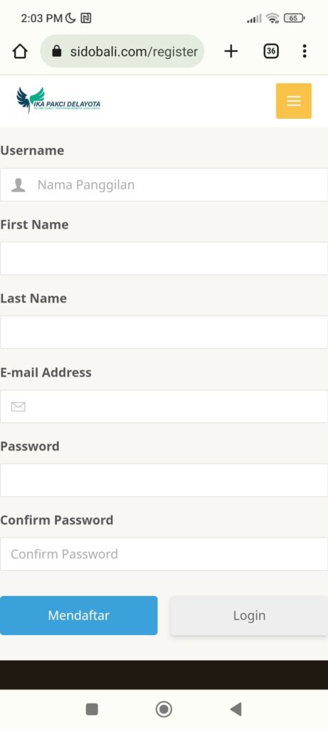 2. Maka akan terlihat form pendaftaran seperti di samping kanan