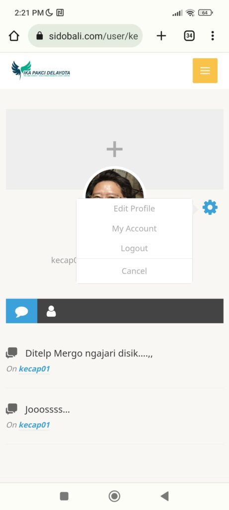 1. Edit Profile wajib dilakukan oleh semua alumni IKA PAKCI DELAYOTA untuk memudahkan dalam menggunakan fitur-fitur yang ada didalam website
